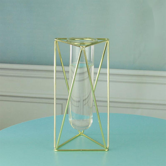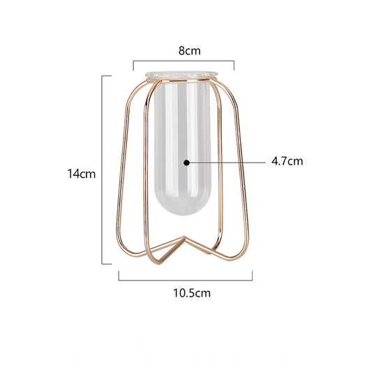 Nordic Style Simple Geometric Metal Wrought Iron Transparent Glass Hydroponic Vase