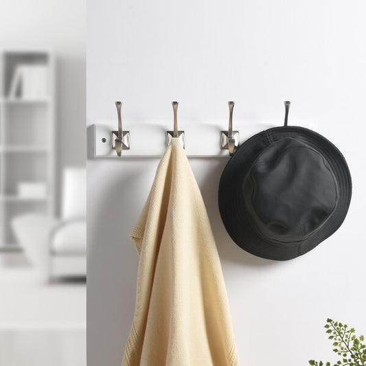 Eure 24'' Wide 4 - Hook Wall Mounted Coat Rack in White/Satin Nickel