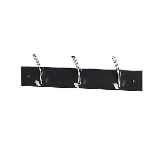 17-5/7 in. L Chrome Long Ribbed 3 Hooks on Black Hook Rail