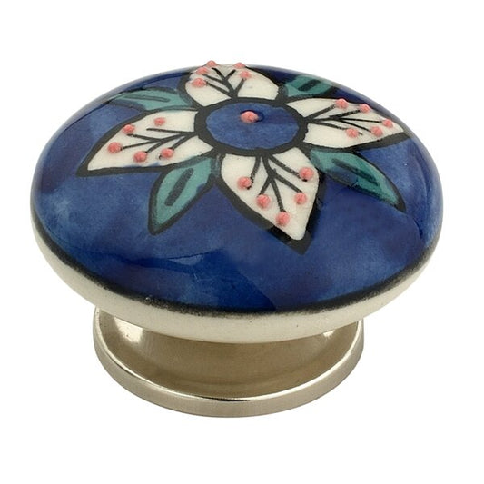 Mascot Hardware Flowered Flat 1-7/9 in. Blue & Multicolor Cabinet Knob (Pack of 10)