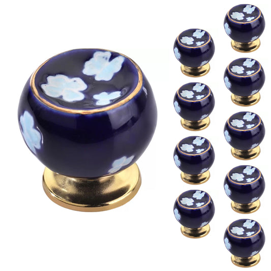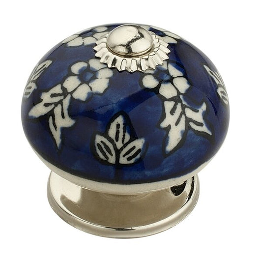 Floral 1-3/5 in. Blue & White Cabinet Knob (Pack of 10)