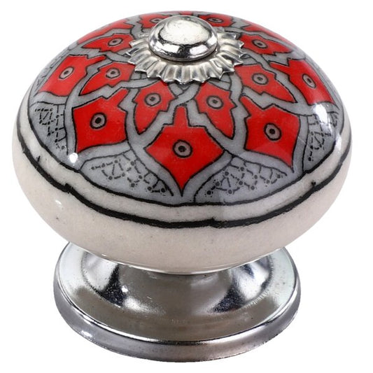 Mascot Hardware Botanical 1-3/5 in. Grey & Red Leaves Cabinet Knob (Pack of 10)