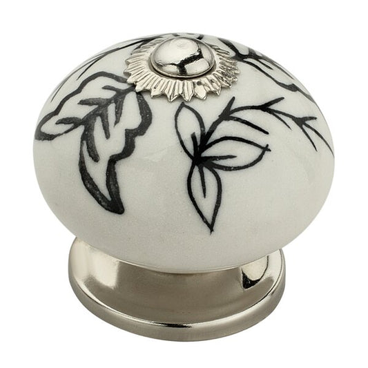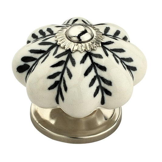 Melon Flower 1-7/10 in. Black & White Cabinet Knob (Pack of 10)