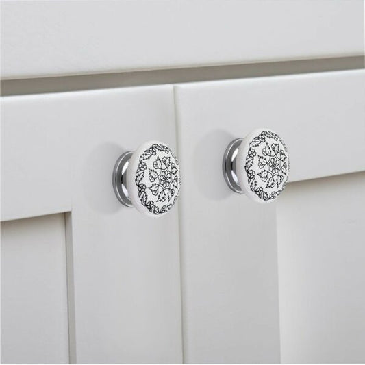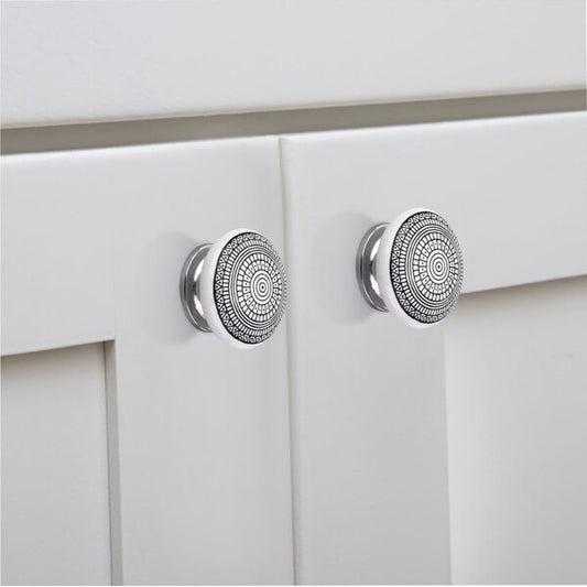 Tribal Design 1-3/5 in. Black & White Cabinet Knob
