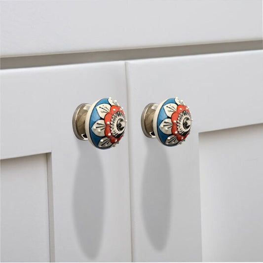 Stone Pattern Round 1-4/7 in. (40mm) Red & Blue Cabinet Knob