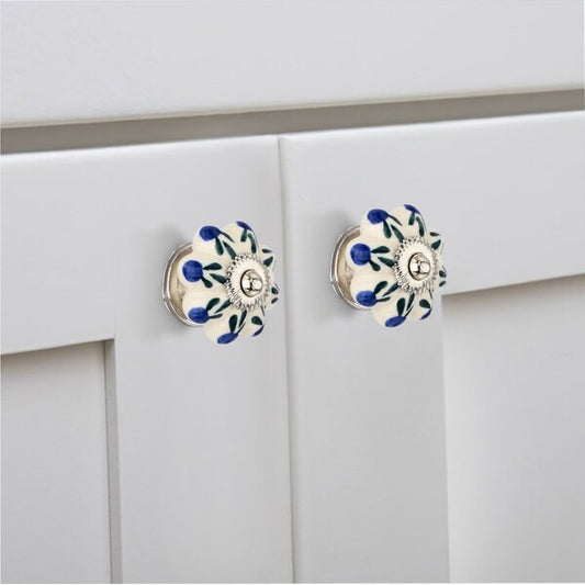 1-5/8 in. (42mm) Blue & White Cabinet Knob
