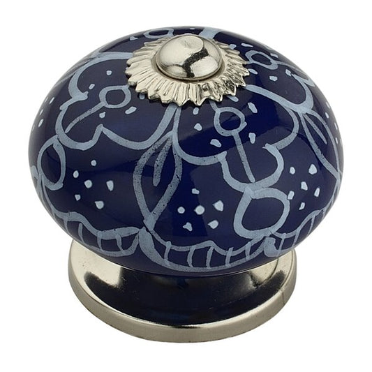 Mascot Hardware Blue Blossom 1-7/10 in. Blue & White Cabinet Knob (Pack of 10)