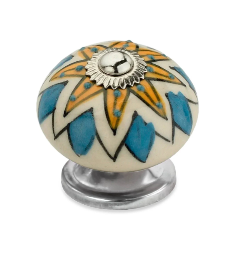 Designer 1-3/5 in. Blue & White Cabinet Knob (Pack of 10)