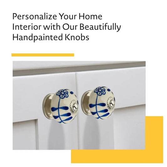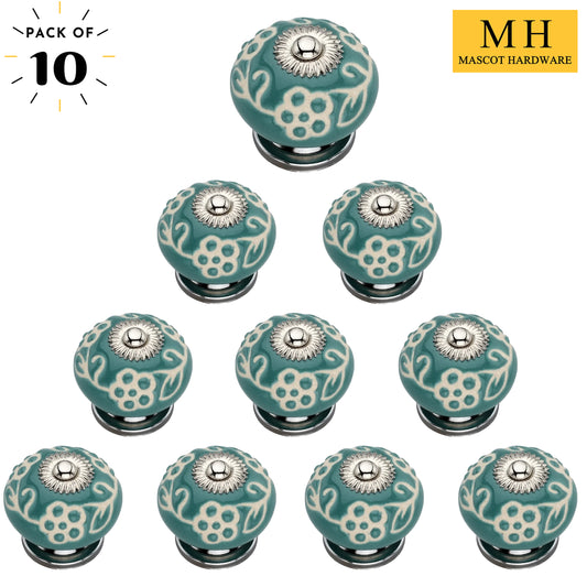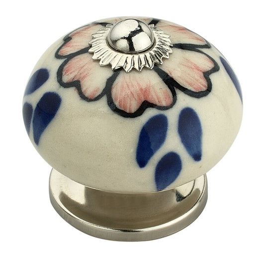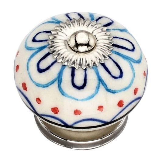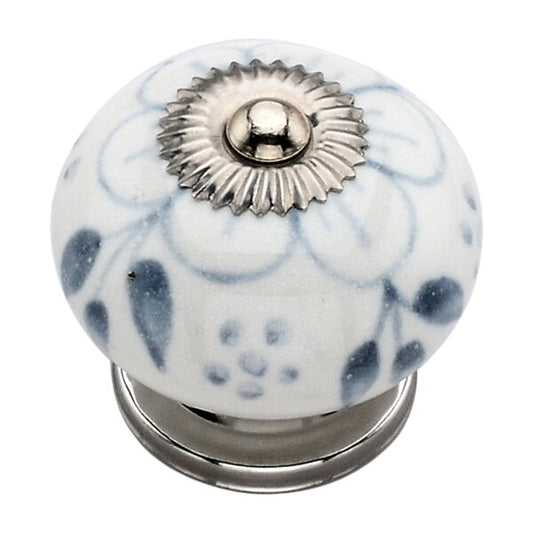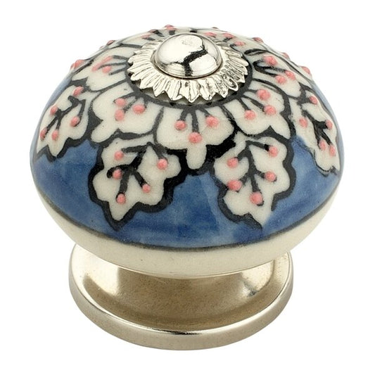 Mascot Hardware Flowered Elegant 1-3/5 in. Blue & Cream Cabinet Knob (Pack of 10)