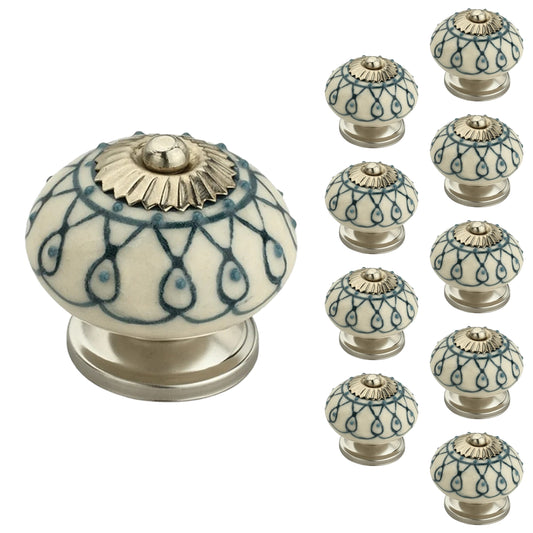 Mascot Hardware Mushroom 1.5 in Drawer Cabinet Knob Blue & White (Pack of 10)