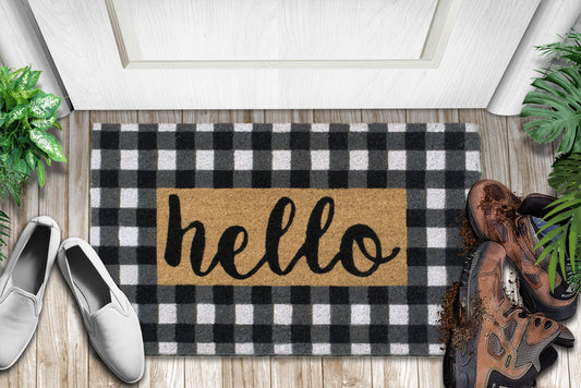 Hello Collection Natural Coir 28 in. x 18 in. Non Slip Indoor and Outdoor