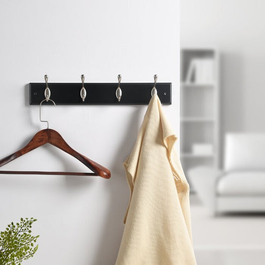 17-5/7 in. L Hat & Coat 4 Hooks on Black Hook Rail