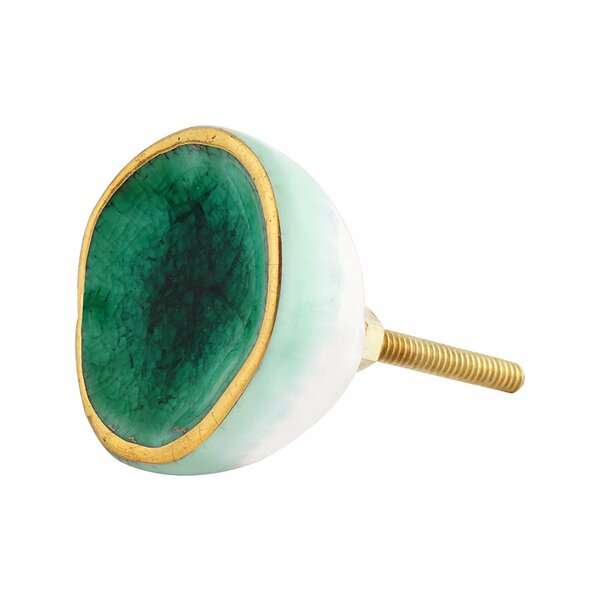 Mascot Hardware Ceramic Round 1-2/3 in. Green & Gold Drawer Cabinet Knob