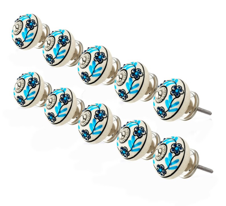 Add a touch of beauty to your homes with our stylish and delightful knobs for dresser drawers vintage and modern styles. This sophisticated bathroom drawer knob's round shape and traditional hand-painted design warm and brighten any room. Made of high-quality ceramic material, and handcrafted and painted to perfection, these dresser knobs' round shape brings a classic elegance to any interior style and home décor you may have. Whether you have a modern or vintage home aesthetic, these knobs are sure to belong. Our durable and versatile pull dresser knobs are quick and easy to install, and also come with all the necessary hardware for installation. Requiring only a hand drill or a ⅛ hole, you get brand-new hand-painted knobs in minutes. What’s even better is that you can set them up yourself!