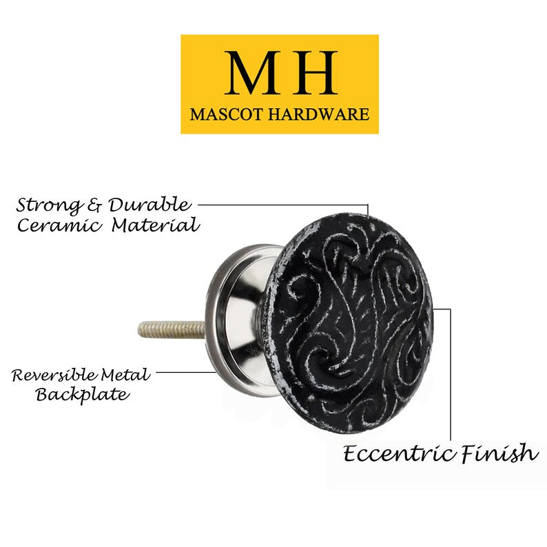 Add a touch of beauty to your homes with our stylish and delightful knobs for dresser drawers vintage and modern styles. This sophisticated bathroom drawer knob's round shape and traditional hand-painted design warm and brighten any room. Made of high-quality ceramic material, and handcrafted and painted to perfection, these dresser knobs' round shape brings a classic elegance to any interior style and home décor you may have. Whether you have a modern or vintage home aesthetic, these knobs are sure to belong. Our durable and versatile pull dresser knobs are quick and easy to install, and also come with all the necessary hardware for installation. Requiring only a hand drill or a ⅛ hole, you get brand-new hand-painted knobs in minutes. What’s even better is that you can set them up yourself!
