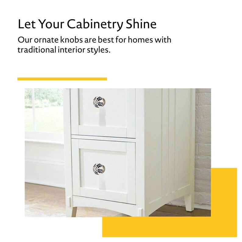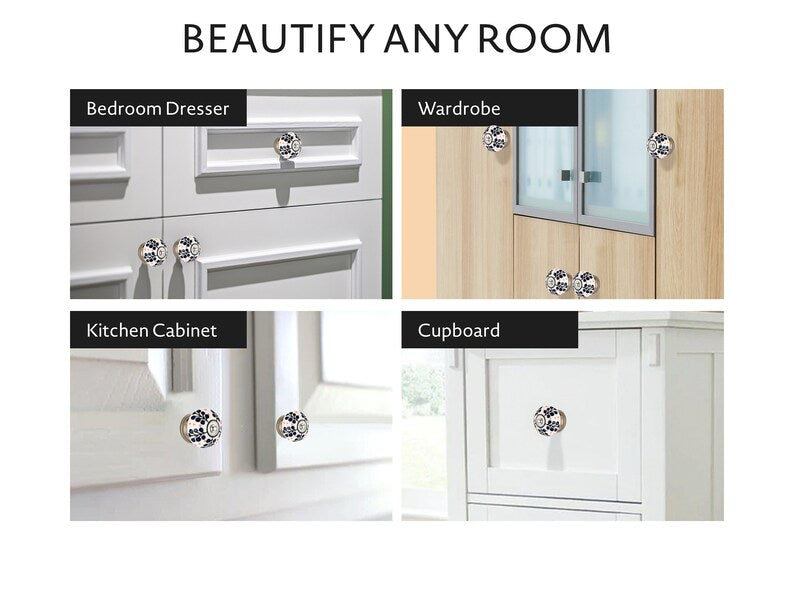 Add a touch of beauty to your homes with our stylish and delightful knobs for dresser drawers vintage and modern styles. This sophisticated bathroom drawer knob's round shape and traditional hand-painted design warm and brighten any room. Made of high-quality ceramic material, and handcrafted and painted to perfection, these dresser knobs' round shape brings a classic elegance to any interior style and home décor you may have. Whether you have a modern or vintage home aesthetic, these knobs are sure to belong. Our durable and versatile pull dresser knobs are quick and easy to install, and also come with all the necessary hardware for installation. Requiring only a hand drill or a ⅛ hole, you get brand-new hand-painted knobs in minutes. What’s even better is that you can set them up yourself!