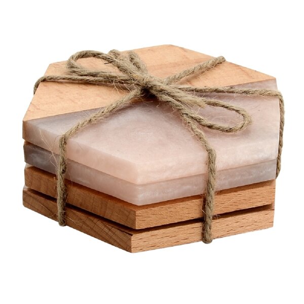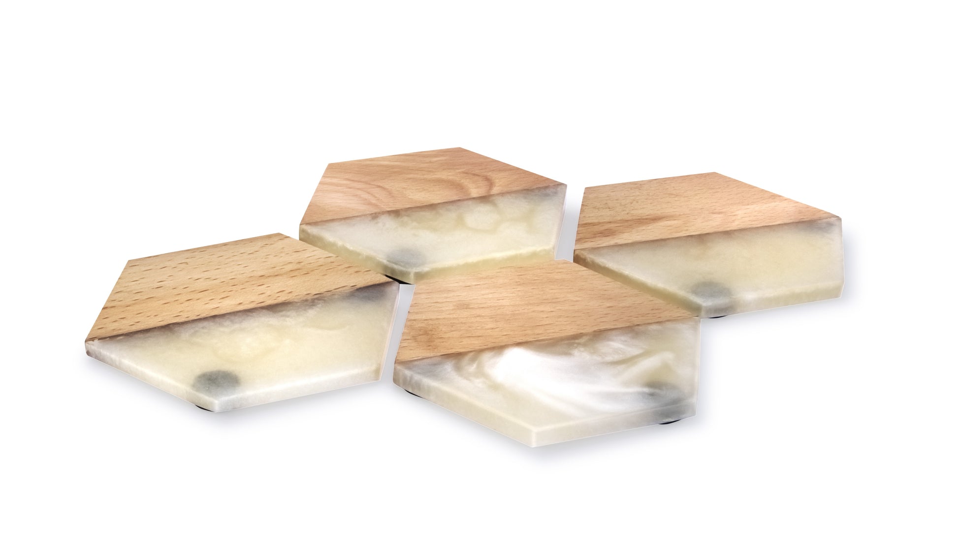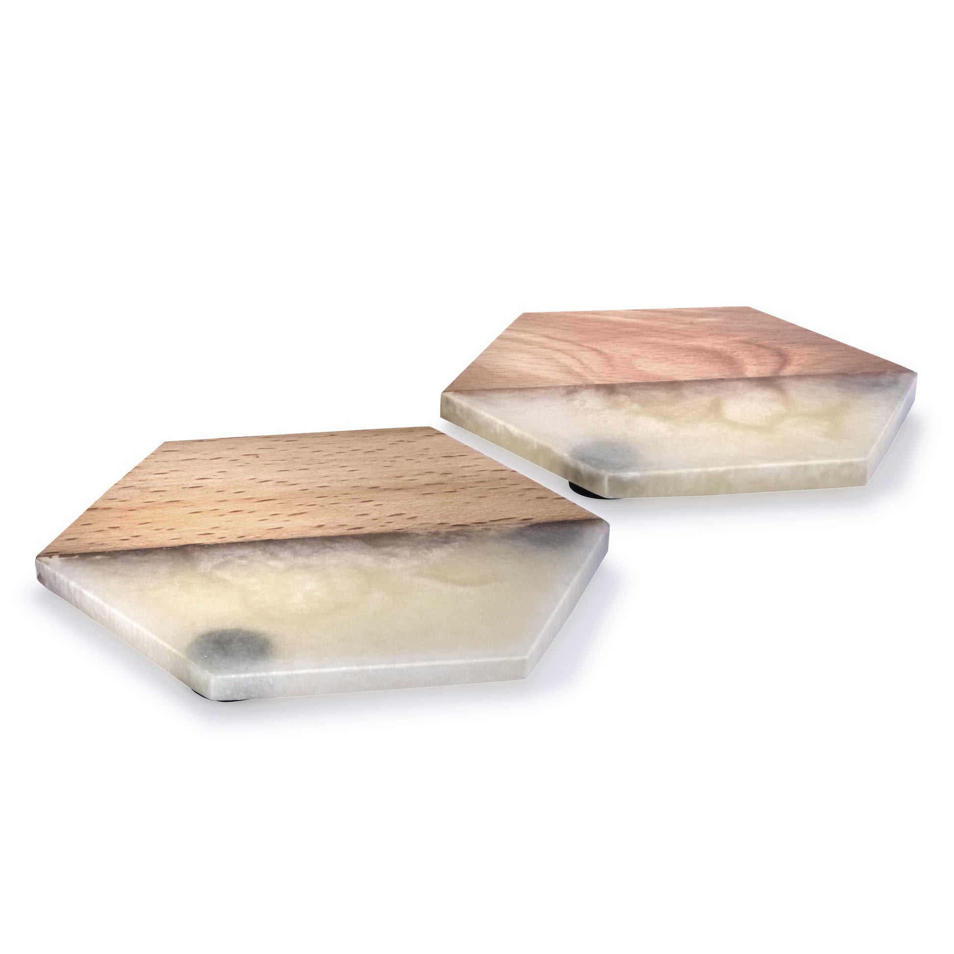 Mascot Hardware Fusion Hexagon Wood & Resin Coaster set of 4