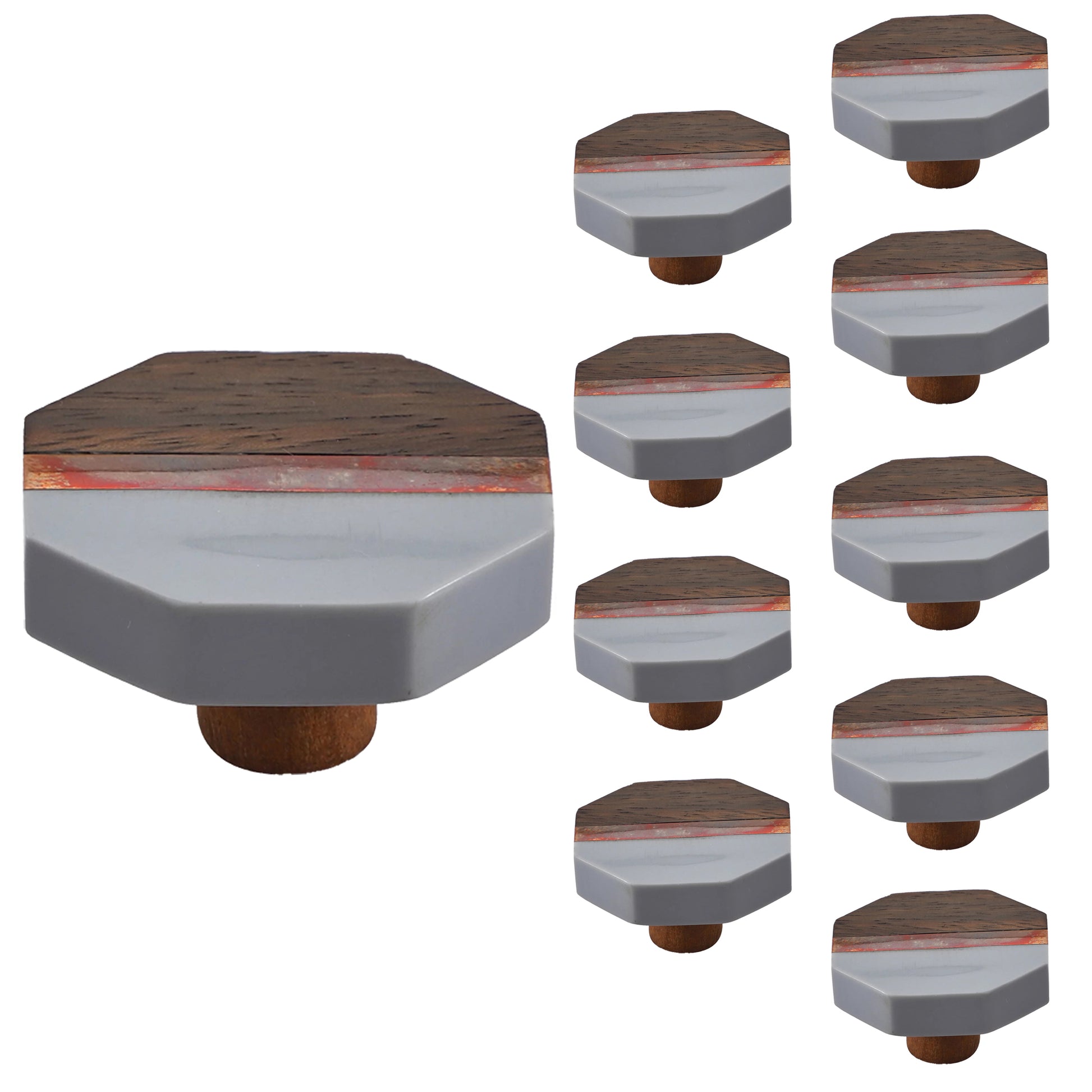 Mascot Hardware Lakewood 1-3/5 in. Octagon Grey & Wood Cabinet Knob (Pack of 10)