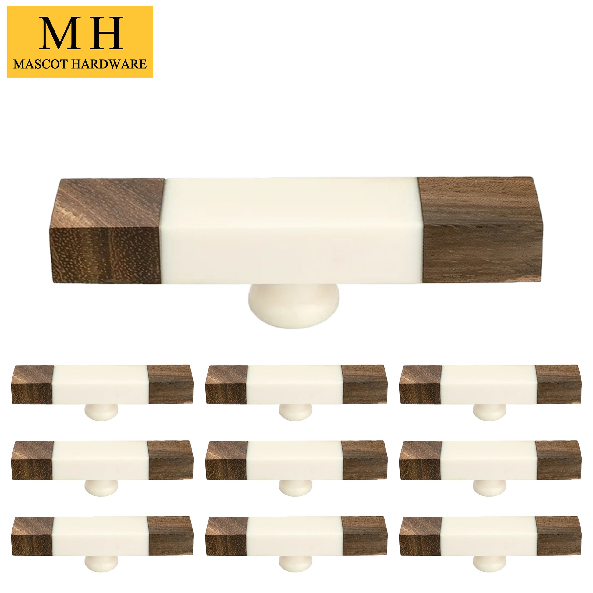 Mascot Hardware White Architecture 3-5/7 in. White & Brown Drawer Cabinet Knob (Pack of 10)